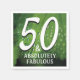 Be absolutely fabulous at 50 with these fun napkins. Background of raindrops on green leaves.