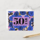 50 and Fabulous 50th Birthday Blue Gold Floral Postcard