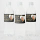 Create unique black and gold 50 & Fabulous Thank You water bottle labels for the 50th birthday party with an elegant design that features a photo in a heart shape, the name, and the fiftieth milestone. Use the template to type your first and last name and add a photo. The first and last names are changed separately to place them elegantly near the heart. You can also change the milestone to 30th, 40th, 60th, 70th, 80th, etc.