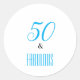 50 and Fabulous birthday party stickers with sky blue and black text. Place these on your party invitations or envelops. You can personalise by editing the text and choose to change the colour or font.