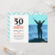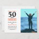 Modern 50th birthday photo invitation that you can personalise and send to celebrate turning 50. "50 and fabulous" is set in a popular design in coral, and black. Text in coral and black that you can personalise using the edit menu. Replace the photo with your own. There is a mint green chevron pattern on the back that can be changed.