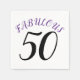 Celebrate turning 50 with this elegant birthday design in black and royal purple text.