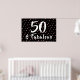Celebrate the birthdays with a flair. "50 (age/year can be customized) and fabulous" in modern brush stroke white text on black and pink hearts background.