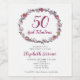 50 and fabulous pink and red roses wreath celebratory wine label for your birthday party. Elegant and festive style.