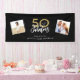 Black and gold modern script stylish multi photo 50th birthday party banner design. Modern gold effect script text. Part of a collection.