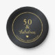 50 and Fabulous Black and Gold Birthday Paper Plate