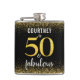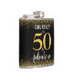 “50 and fabulous.” Be proud, rejoice and usher in 50 with style! This chic, playful, personalised, sparkly gold faux glitter confetti on a black background flask will help make her birthday special. Matching and coordinating invitations, envelopes, labels, paper napkins, paper plates, mugs and other items are also available. A fun gift for a good friend!