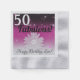 #50 or Fifty and Fabulous! Celebrate with fun black, pink, and white formal, but fun napkins. Pale pink daisy with faux sparkle centre stands out against the soft hombre background. Pink and white star accents twinkle in the background of this original graphic design. White text 50 with purple and black cursive typography “fabulous”. Personalise the event with the Birthday girl’s name!