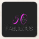 50 and fabulous Chic Hot Pink Black Birthday Square Paper Coaster