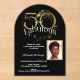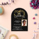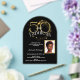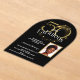 This stylish acrylic party invitation for a milestone 50th birthday reads, "50 and Fabulous". The unique arch shaped invitation can be personalised with one photograph of the birthday girl and the party details are in modern white calligraphy. The velvety black background accentuates the glitter and the gold and white lettering. Choose from an arch shape or a rectangle.