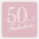 50 and Fabulous Elegant Script Pink 50th Birthday Square Sticker