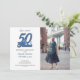 Gather all your friends and family for this special birthday celebration be it a surprise party or a great get together. A beautiful 50th birthday photo invitation you can personalise and send out for your fiftieth birthday party get together. The words "50 and fabulous" are set using popular typography. Replace the sample photo with your own. Use the edit menu to change the blue and black texts. The back is also decorated with a nice light blue flowers outlines. Other colours and patterns are available.