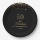 50 and Fabulous Gold Glitter and Black Birthday Paper Plate