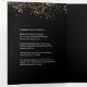 This sophisticated tri-fold design features a luxurious black background adorned with cascading gold confetti details, exuding glamour and class. The bold “50th” typography highlights the significance of the celebration, while customizable text allows you to include the celebrant’s name, message, photo, date, and event details.