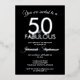 You're turning fifty, so celebrate your milestone fiftieth birthday in timeless style with this elegant black and silver foil “50 & Fabulous” birthday party invitation. Featuring a bold modern layout with sophisticated silver and white typography, this customizable 50th birthday invite is perfect for milestone celebrations, cocktail parties, dinner gatherings, and glamorous birthday events. Personalize with your party details, venue, and RSVP information to create a chic and memorable invitation your guests will love. Other colorways and designs available.