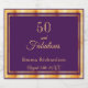 Simple and elegant 50th birthday party champagne label. Girly and feminine purple background colour and a faux gold frame. With the text: 50 and fabulous. Template for name and date. Golden letters.