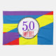 Celebrate Turning 50 in style with these colourful stripes 50th birthday design. 50 and Fabulous with hot purple,black,and red text.