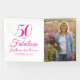Modern and minimal 50 and Fabulous white photo 50th birthday party banner with pink script that you can personalize for your fiftieth birthday party celebration. The words "Fifty and Fabulous" are set using trending bold font typography. . Text colors can be changed using the edit menu.