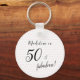 Trendy Elegant Typography Script Pink Dots Modern 50th Birthday keychain. Celebrate your fiftieth birthday in style, with this elegant and fun fiftieth birthday invitation.