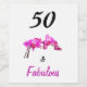 Pink on white 50 and Fabulous party supply with a pink orchid photo and black and pink text. An eye-catching item for every birthday party.