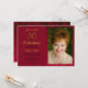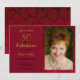 Elegant, beautiful metallic red gold 50th birthday invitation you can personalise and send out for your fiftieth birthday party celebration. The words "50 and fabulous" are set using popular typography. Replace the sample photo with your own. Modern floral pattern on the back of the card. Image copyright Marg Seregelyi Photography.