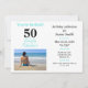 Make turning 50 a simply fabulous occasion with this fun and flirty birthday photo invitation. Personalise it and send it out for your big celebration. The words "50 and Simply Fabulous" are in bright blue and black typography. You can change the photo out with your own photo if you'd like. The text colours can be changed through the edit menu. The back of the invitation has a beautiful grey geometric pattern with circles. Other patterns and colours are available.
