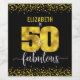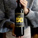 “50 and fabulous.” Own it and usher in 50 with style! This stunning, modern, graphic faux gold foil “50” and dots on black, personalised wine label will help make her birthday extra special! Matching and coordinating invitations, envelopes, labels, paper plates, mugs, banners, and other items are also available.