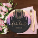 A trendy and glamourous 50th birthday paper plate. A classic black background decorated with rainbow coloured faux glitter drips, paint dripping look in purple, pink and rose gold. With the text: 50 and fabulous. Personalise and add a name. Golden coloured text. The word Fabulous is written with a modern hand lettered style script with swashes.