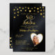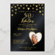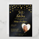 Create an elegant black and gold 50th birthday invitation with a heart-shaped photo (please use the template to upload your picture before ordering). Text template makes it easy to customise the invites with your data, such as a birthday lady's name, event date, venue address, and RSVP data. You can also change the milestone to 30, 40, 60, etc. Real gold foil is on the front side of the card. Black background imitates metallic surface.