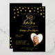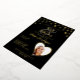 Create an elegant solid black and gold 50th birthday invitation with a heart-shaped photo (please use the template to upload your picture before ordering). Text template makes it easy to customise the invites with your data, such as a birthday lady's name, event date, venue address, and RSVP data. You can also change the milestone to 30, 40, 60, etc. Real gold foil is on the front side of the card.