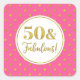 50 & Fabulous Birthday Pink White Gold Dots Square Sticker