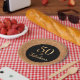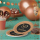 These 50th birthday party plates feature faux gold glitter. Other matching items are also available.