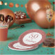 These 50th birthday party plates feature faux rose gold glitter. Other matching items are also available.