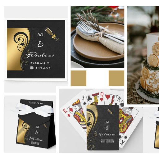 50 & Fabulous Black Gold Birthday Mini Bottle Wine Label