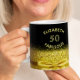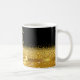 Elegant, classic, glamorous and feminine. A faux gold colored bow and ribbon with golden glitter and sparkle, a bit of bling and luxury for a 50th birthday gift or keepsake. Black background. Templates for her name. The age 50 and text: Fabulous. Curved text and golden letters