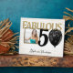 Celebrate the fiftieth birthday milestone with this elegant and glamourous black and gold birthday table top plaque. Adorned with a glitter balloon in black and a sprinkle of gold glitter. Personalise it with the birthday person's name and special high resolution photo. Matching plates, napkins, and other pieces are available as well through Simply Farmhouse Press on Zazzle.