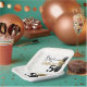 Celebrate this fiftieth birthday milestone with this elegant and glamourous black and gold small square paper plates. They are also adorned with glitter balloons in black and gold, surrounded by a gold glitter edge. Created by Simply Farmhouse Press.