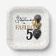 50 & Fabulous Black Gold Glam Square Paper Plate