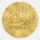 50 & Fabulous Black On Gold Yellow Cactus Flower Classic Round Sticker