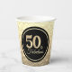 An elegant fiftieth birthday paper cup with chic gold and black design.
