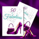 A sparkly purple shoe and bag is the basis of this 50 and fabulous birthday invitation.