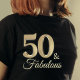 Elegant fifty and fabulous birthday guest of honour t-shirt, gold and black chic lettering and number design.