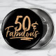 50 & Fabulous Gold Glitter 50th Birthday Sparkle Buttons features the modern text design "50 & Fabulous" in gold glitter calligraphy script. Perfect for a 50th birthday party or celebration.
