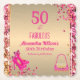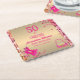 For the 50 years old fashionista's birthday celebrations paper coaster. Women's glamourous gold metallic foil faux glittery hot pink frame with confetti, beautiful a pair of pink high heels 👠 with bows sits in the left corner and a cute and colourful golden pink purse 👛 (hand bag) sits in the lower right corner ,50 & Fabulous script hot pink fuchsia on golden metallic foil. You can easily change your name, fonts, colour, size and age number by clicking Zazzle's customisation options.