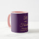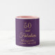 Simple and elegant 50th birthday mug. Chic and feminine dark Purple background colour. With the text: 50 and fabulous. Template for name and date. Golden letters.