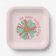 Get ready to celebrate in style! These chic "50 and fabulous" pink paper plates feature a retro flower in pink and aqua!