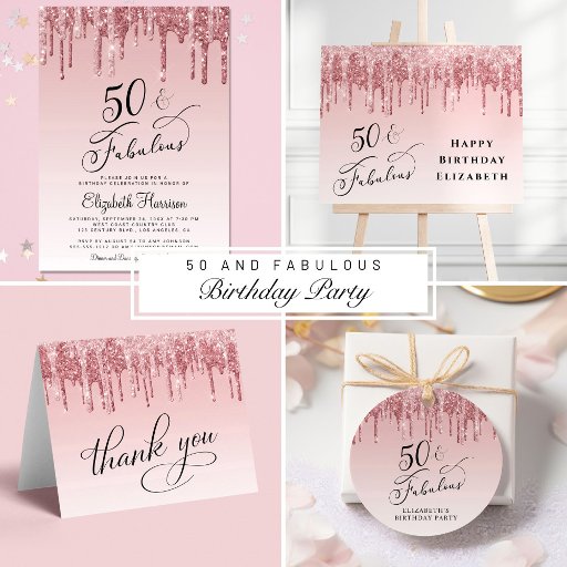 Pink Rose Gold Glitter 50th Birthday PartyDesigned by Julie Horton