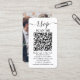 Share one of your engagement or wedding photos and simplify RSVP responses with chic modern QR Code enclosure cards. Picture and all text are simple to customize, including wording that reads "rsvp scan me". To make your own QR code using the generator, simply type the website URL into the template. By scanning the card with their phones, guests are sent directly to the wedding website to reply to the invitation. An online rsvp process reduces the chance that cards will be lost in the mail. It's also more versatile, in that you can ask for more detailed information, such as meal choices, food allergies, and song requests. All response information can be personalized or deleted. The black and white design features modern minimalist typography, handwritten script calligraphy and 1 picture of your choice. This card is a stylish way of asking wedding guests to kindly reply to your upcoming special day celebration.