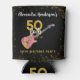 50 Rocks 50th Birthday Party Pink Black Gold Can Cooler