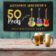 50 Rocks birthday party personalised funky guitar gold and black banner for him. A rock and roll 50th birthday banner with three cool psychedelic guitars on black background. An electric guitar with Fire flame pattern and red pick guard, a multicolored semi acoustic guitar and a psychedelic classic acoustic guitar art illustration with personalised black and gold modern cool typography. This easy to use template to change the age and name creates the perfect party sign to celebrate fifty in rock n roll style and is ideal for a guitarist, musician and music lovers. Any guitar player will tell you that you can never have too many guitars. This cool modern musical instrument design celebrates the music energy of this wonderful musical instrument and is the perfect way to rock a fiftieth birthday celebration. Original artwork by artist Catherine Sweetman
